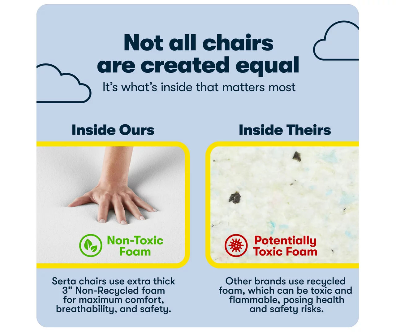 The Serta Big and Tall Executive Office Chair brings the Serta legacy of quality, comfort and style to your office. Specialized Premium Ultra foam makes up the Smart Layers that are placed over individual pocketed ComfortCoils, offering pressure-relieving comfort and optimized support for an unrivaled seating experience. The deep, layered body pillows on this office chair wrap you in softness, creating a plush feel that takes you comfortably through your day. Designed to help alleviate strain and discomfort, this ergonomic office chair has an elevated headrest to support your neck. This big and tall office chair has a generous, roomy seating area so you can stay focused and productive without feeling constricted. Commercial grade components like an extra-large steel plate and thicker plywood ensure this heavy duty office chair stands up to heavy use. A great addition to your executive workspace, this Serta office chair is finished in a supple bonded leather.